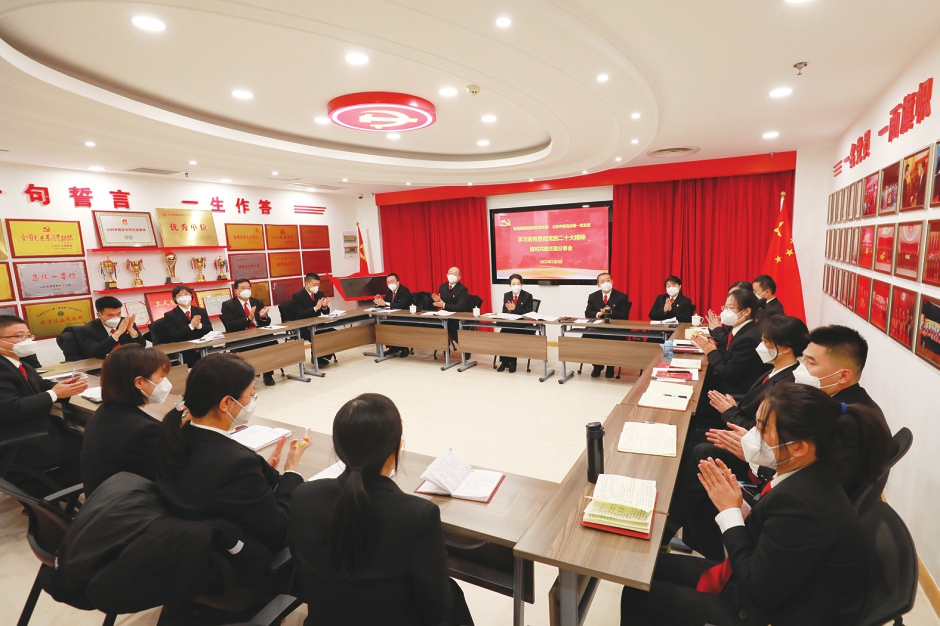 图二:1月3日,省高院新闻宣传处党支部、太铁中院机关第一党支部围绕“学习宣传贯彻党的二十大精神”主题,召开结对共建学习交流分享会。