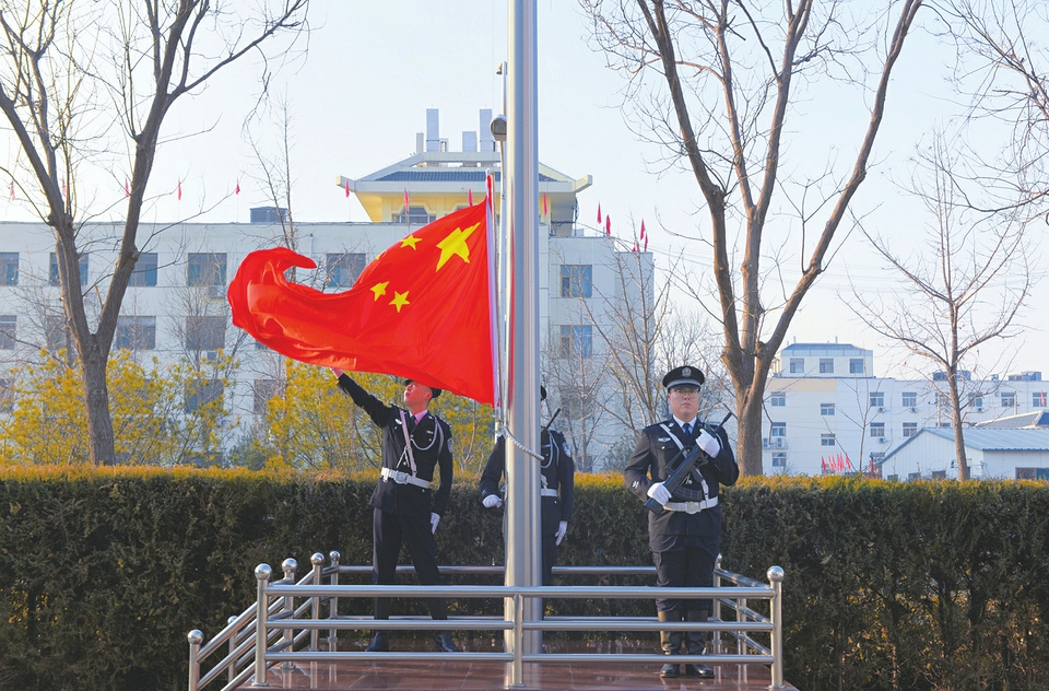 图一:1月3日,太原市晋源区人民法院庄严而隆重地举行升国旗仪式,全体干警整装肃立,向国旗行注目礼,用真挚的感情表达对伟大祖国的无限热爱和对法院事业的无限忠诚。