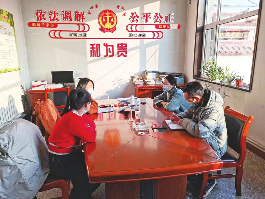 图五:1月3日,文水县人民法院诉前人民调解委员会调解员有序开展诉调对接工作。