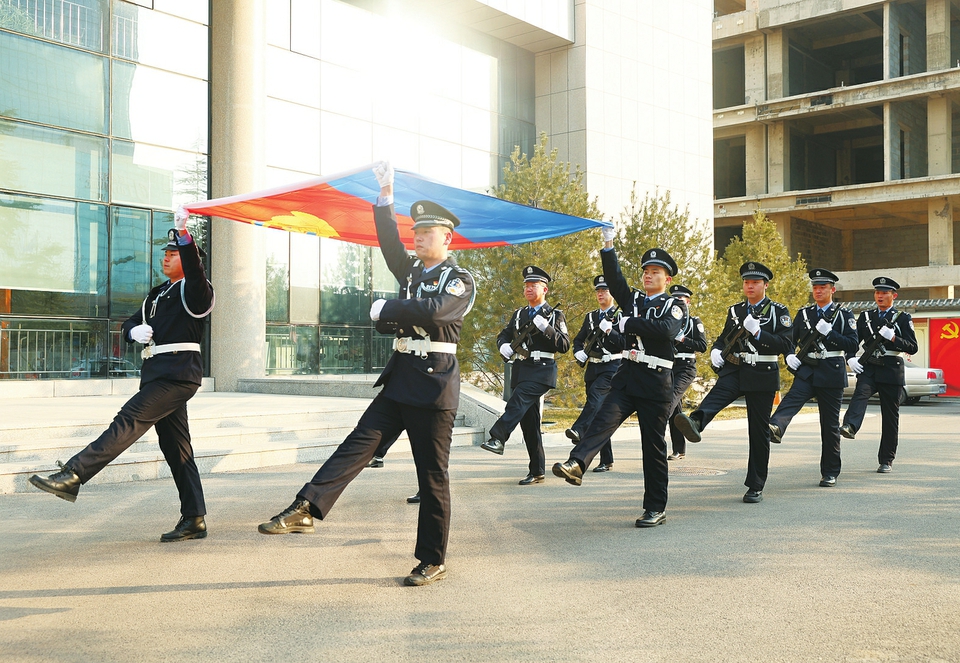 1月10日,太原市公安局小店分局举行迎警旗重温入警誓词仪式,庆祝第三个中国人民警察节。全体民警面对警旗,高举右拳,庄严宣誓,激发了民警的荣誉感、自豪感,展现了人民警察英勇顽强、忠诚奉献的职业精神。
