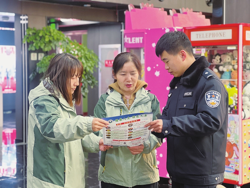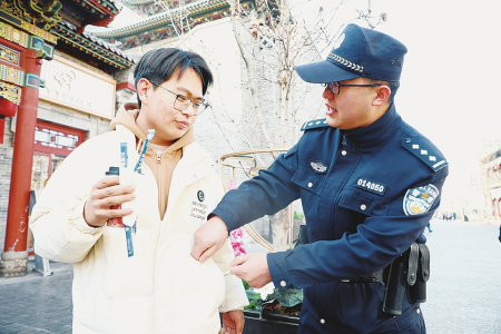 图①:12月25日,太原市公安局迎泽分局柳巷派出所民警在钟楼街通过发放宣传资料、现场讲解等方式,提醒商户加强防盗措施,保障店铺财物安全,同时也向市民普及防骗防盗知识。