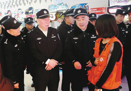 图①晋中市副市长,公安局党委书记、局长靳润喜深入市区人员密集场所和重点部位督导检查。