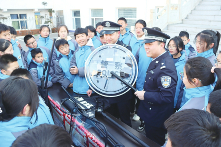 1月10日,阳城县演礼中学师生走进县公安局演礼派出所,参观警用装备,体验实操实训,学习反诈、禁毒知识,近距离接触警营生活。民警化身讲解员,讲解装备、以案普法,与师生共庆警察节。