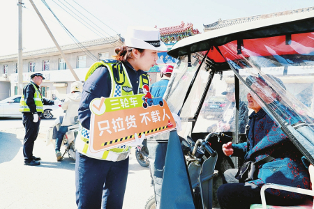 近日,运城市公安局盐湖分局交警大队组织宣传科和园区中队包村民警,走进北相镇曹允村开展安全宣传。本报记者张二红 通讯员葛崇收摄