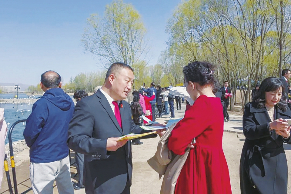 近日,太原市尖草坪区人民法院组织干警走进汾河雁丘园、汾河湿地公园开展“爱鸟周”普法宣传系列活动,呼吁市民呵护鸟类家园,共同护航绿色生态。 在汾河湿地公园,干警们向前来观赏鸟类的市民发放《爱鸟倡议书》等宣传资料,用通俗易懂的语言对保护野生鸟类的重要性及相关法律知识进行讲解,帮助他们筑牢生态意识和环保理念。活动共发放宣传资料500余份,解答法律问题30余人次。