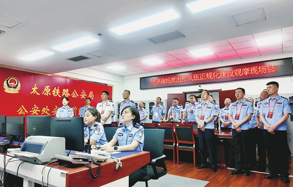 日前,太原铁路公安处召开正规化建设现场会。会议期间,与会人员实地观摩了太原站派出所、太原南站片区所队、晋中站派出所、吕梁站派出所正规化建设成果,随后前往吕梁市公安局离石分局西属巴派出所学习创建“枫桥式公安派出所”经验做法。