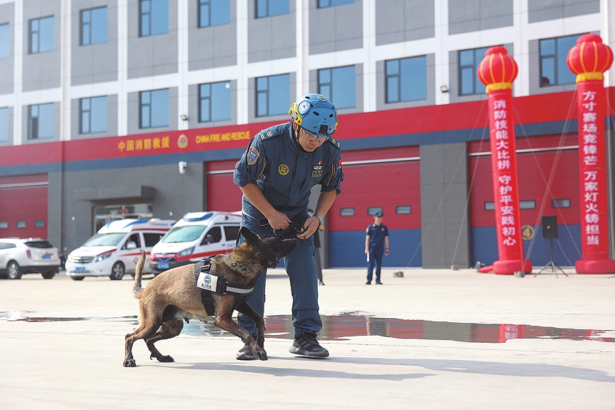 同一时间,翼城县的第二届消防技能比武竞赛现场正上演“巅峰对决”。森林消防队的水泵架设行云流水,蓝天救援队的搜救犬迅捷如风,天龙救援队的高空绳索救援惊险刺激……来自35家重点单位、5支专业队伍的200余名队员同场竞技。“5×40米搬运重物”项目中,矿山救护队队员王鑫肩扛120斤假人仍健步如飞:“平时下井演练比这更重,关键时刻必须顶得上!”