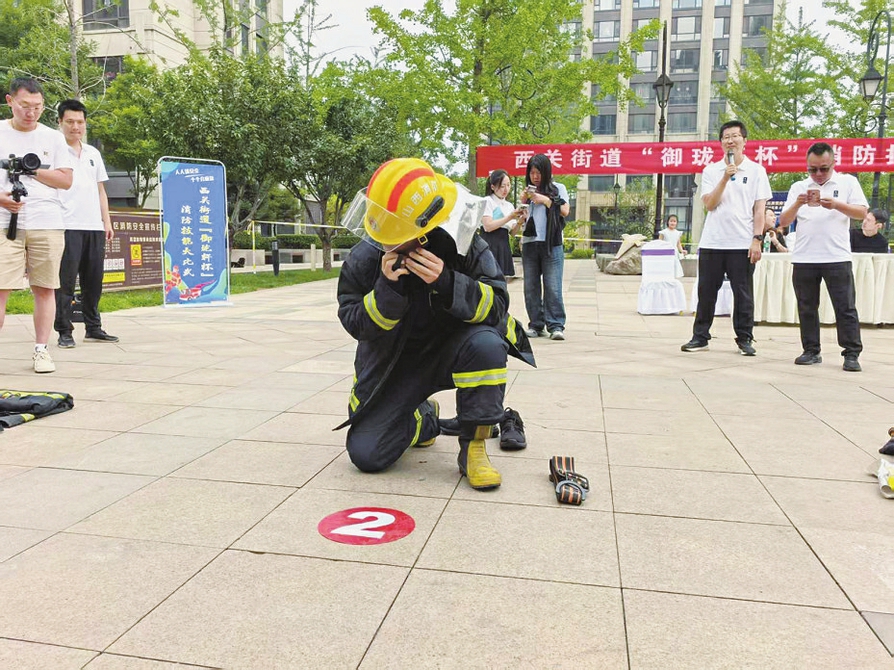 “水带保龄球,全中!”“消防服穿戴再快3秒!”6月20日,介休市西关街道御珑湾小区广场上欢呼不断。街道联合消防部门创新设计的“消防服穿脱”“水带保龄球”等4个趣味项目,让社区工作者、物业人员在游戏中掌握灭火救援技能。参赛御珑湾小区物业经理武林辉感慨:“原来甩水带要像抛渔网一样用巧劲,这次真是学活了!”