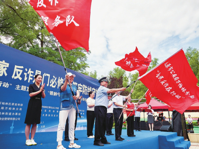 7月4日,在和平晋机东风社区,太原市万柏林区委政法委、太原市公安局万柏林分局等单位举行“全民反诈在行动”主题宣传月暨“银龄守护”志愿活动启动仪式。现场成立了由公安、卫健、银行、社工等组成的7支反诈宣传志愿队,他们通过展板宣讲、案例互动等形式,向群众揭露最新诈骗手法,提升群众特别是老年群体的防骗意识。