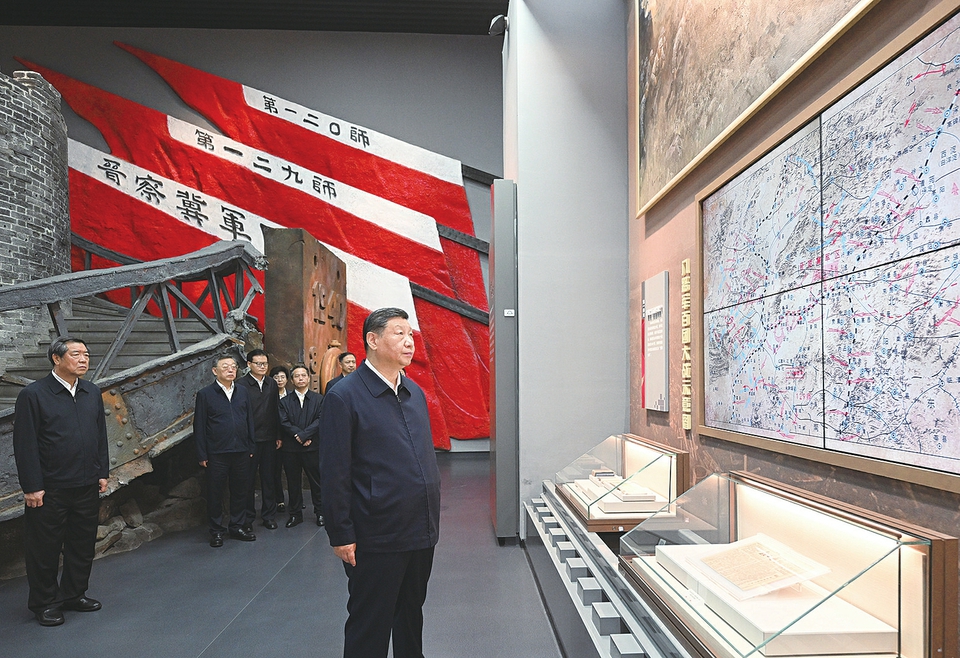 7日下午,习近平在位于阳泉市狮脑山的百团大战纪念馆考察。新华社记者谢环驰摄