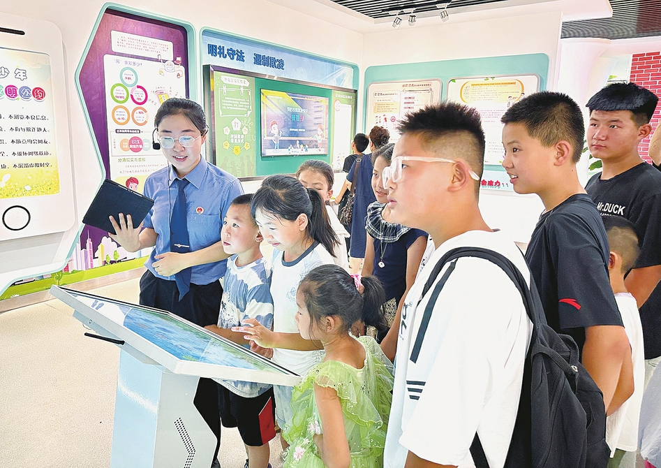 图2:近日,平遥县妇联组织60余户困境儿童家庭前往青少年法治教育基地参观学习。活动中,检察干警通过参观讲解、观看视频、知识问答等方式,为孩子们讲解了如何预防校园欺凌、如何应对非法侵害等知识。