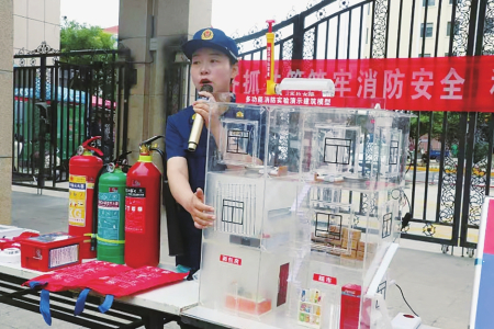 于是,我主动与盲人曲艺宣传队沟通,将消防知识与群众喜闻乐见的曲艺节目相结合。一次社区活动结束后,一位大爷说:“姑娘,你们这个活动搞得可真不错,原来消防知识还能这么有意思!”那一刻,我知道,这条路走对了。可新的挑战又很快出现。走进企业开展宣讲时,即便我在台上讲得嗓子冒烟,台下依旧有不少人低着头刷手机,还有人打着哈欠中途离场。于是,只要一有空我就琢磨怎么改进,为了让抽象的消防知识变得直观易懂,我决定把消防实验融入宣传。为做好这次尝试,我跑遍大大小小的市场采购道具,在办公室反复练习。从油锅起火到烟囱效应,从电动自行车火灾再到烟雾模拟等,内容丰富有趣、结果一目了然的实验让企业员工主动放下手机,跟着我们探寻“真相”,那一刻,我知道,这种尝试又成功了。
