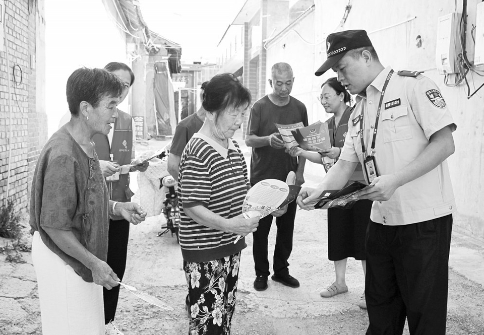 近日,闻喜县工业园社区工作人员联合桐城派出所民警走进小区,开展防范电信诈骗宣传活动,提醒群众提高警惕,不轻信陌生来电、不点击不明链接、不向陌生账户转账,守护好自己的“钱袋子”。