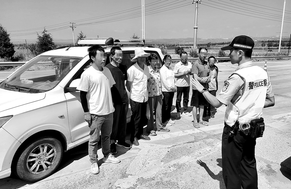 图②8月20日,省公安厅交管总队高速五支队组织民警在神池收费站开展重点违法集中查处行动时,查获一起面包车超员违法行为。民警对驾乘人员进行了批评教育,并依法进行了处罚。