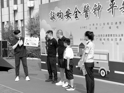 图①8月20日,由太原市公安局交警支队尖草坪一大队联合相关部门共同举办的“敲响安全警钟平安伴你同行”交安宣传活动在柴村社区举行。活动通过现场体验、图片问答、讲解点评等形式,介绍了酒后驾驶等违法行为的危害。