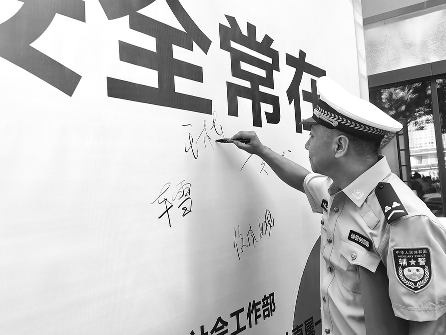 8月20日上午,吕梁市委社会工作部、市公安局交通管理支队直属一大队联合辖区企业,在离石中心城开展“一盔一带 安全常在”交通安全共建行动。活动现场,民辅警与市民共同在“安全文明出行从我做起”横幅上签名,承诺以实际行动践行交通安全理念。