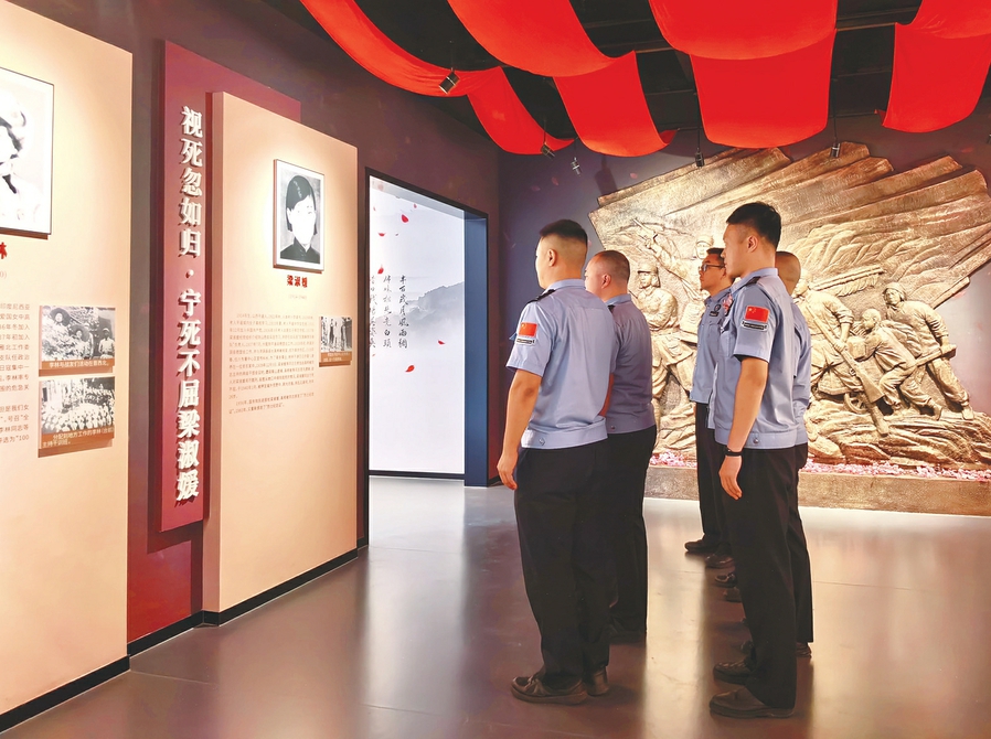 8月21日,山西出入境边防检查总站基层民警走进山西国民师范旧址革命活动纪念馆,开展主题党日活动,切实感悟革命先烈们不屈抗争的民族气节。