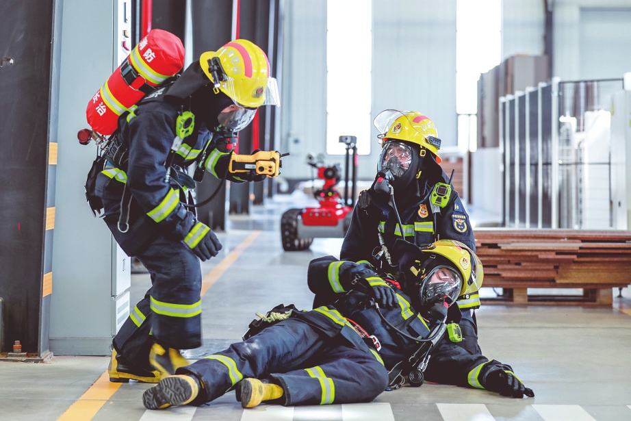 演练假设该公司生产车间因电线短路引发火灾,由于内部存放大量木板制品,火势迅速蔓延,浓烟充斥。警情发生后,支队调派辖区队站到场处置,支队全勤指挥部遂行出动,并增派支队级灭火救援专业队及增援力量赶赴现场。参演人员按照单位先期处置、辖区消防站初战处置和增援单位协同处置的顺序,运用“堵截包围,左右合击、分区控火”等战术措施实施灭火救援行动。整个演练从火情侦察、安全员设置、车辆停靠、初战控火、灭火机器人灭火、结构坍塌预警、紧急撤离、增援保障等科目分步实施,救援处置期间各小组行动迅速、密切配合,充分发挥各自岗位和作战单元优势,圆满完成演练工作。