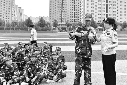 图2:8月25日,太原市公安局迎泽分局老军营派出所在辖区学校开展防暴知识培训及应急演练活动。