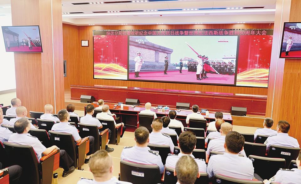 图①:太原市公安局综改分局组织全体民辅警和职工观看纪念中国人民抗日战争暨世界反法西斯战争胜利80周年大会直播。大家表示,一定要铭记历史、奋勇拼搏,挑起重任、开创未来,为以中国式现代化全面推进强国建设、民族复兴伟业团结奋斗。