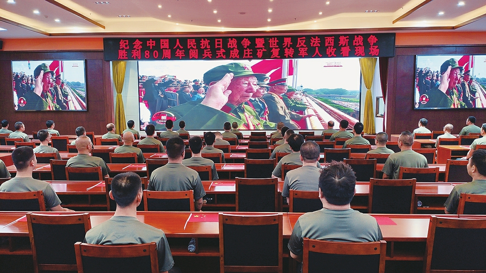 图②:晋能控股装备制造集团成庄矿组织退伍军人集中收看纪念中国人民抗日战争暨世界反法西斯战争胜利80周年大会直播。