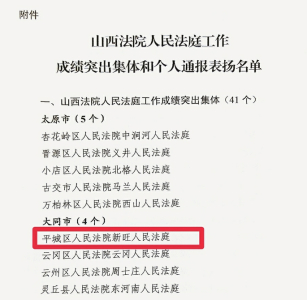 近年来,大同市平城区人民法院新旺人民法庭紧紧围绕“公正与效率”主题,锚定创建“枫桥式人民法庭”目标,全面贯彻落实人民法庭实质化运行要求,践行新时代“枫桥经验”,精准对接群众日益多元的司法需求,将“小事不出商圈、大事不出街道、矛盾不向上交”的治理愿景转化为高质量司法的生动实践,在市井烟火中淬炼出基层治理的新“枫”尚。2024年2月,最高人民法院、省高级人民法院对新旺人民法庭践行新时代“枫桥经验”的经验做法给予了充分肯定。今年4月,新旺人民法庭被省高院授予“山西法院人民法庭工作成绩突出集体”称号。