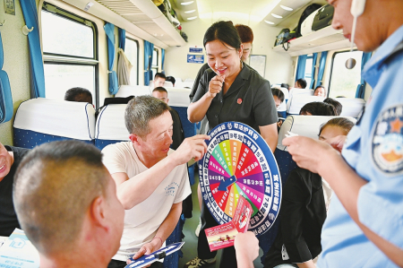 “欢迎乘坐本次‘法治号’列车!我是主持人韩琦,来自临汾铁路运输法院。我们将围绕列车出行、民事维权、反诈防骗等内容,和大家一起聊聊身边的法律知识……”活动伊始,干警热情的开场白迅速吸引了乘客的注意力。