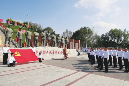 在平型关大捷纪念馆将帅广场前,全场肃立,共同垂首向革命先烈鞠躬,以最质朴的方式、最真挚的情感致以最崇高的礼赞。鞠躬礼毕,全体人员面向鲜红党旗整齐列队,重温入党誓词。