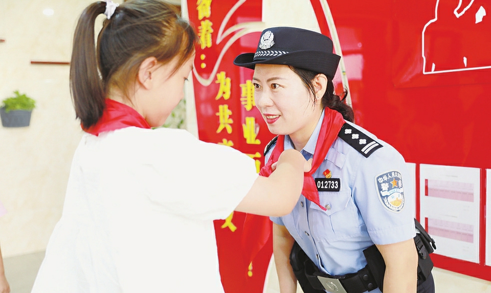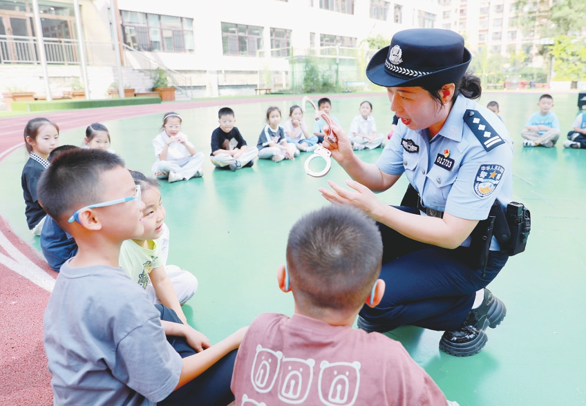 郭峰的工作远不止开学第一课。担任法治副校长4年以来,她积极参与校园安全规划讨论,从监控盲点到消防设施的维护,从保安培训到应急疏散路线,以专业的眼光审视每一个可能存在的隐患。放学时段,她常常站在人流车流交织的路口,护送孩子们安全过马路;课余时间,她喜欢走进班级,耐心听孩子们讲述烦恼,为他们答疑解惑。