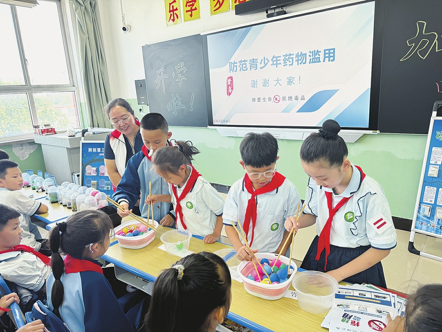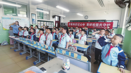 近日,太原市戒毒所禁毒宣讲团民警联合尖草坪区社区戒毒(康复)服务中心禁毒社工,走进迎新街小学开展禁毒宣传进校园活动。其间,民警结合播放的动画短片,用通俗易懂的语言向学生们重点讲解了“跳跳糖”“奶茶粉”“卡通贴纸”等新型毒品的迷惑性与危害性。“禁毒夹夹乐”小游戏环节,学生们积极参与,在趣味互动中进一步提升了防毒意识。随后,全体学生进行了庄严的禁毒宣誓,表达了坚决抵制毒品、共建无毒校园的决心。