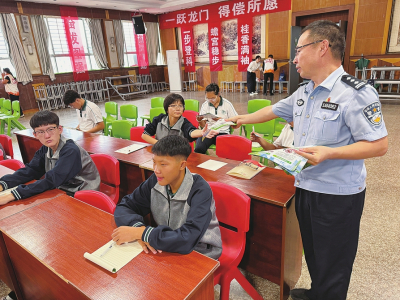 9月4日,临汾戒毒所“星火”禁毒宣讲团民警联合襄汾禁毒社工,走进襄汾县职业高中,开展了一场禁毒宣传教育活动。 此次活动以课堂式教学为主,发放宣传资料、参观毒品仿真模型为辅的模式,系统讲解了毒品的分类及危害。宣讲团民警着重介绍了第三代毒品——新型精神活性物质,强调了青少年面对毒品诱惑时应保持的正确心态与行为准则,并普及了打击毒品犯罪的相关法律法规及举报方法,鼓励学生与家人共学,提升家庭防范意识。图为民警为学生分发禁毒资料。