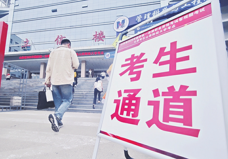 9月13日清晨,城市还未完全苏醒,记者早早来到山西财经大学,此时的校门口已热闹起来。横幅高悬,“2025年国家统一法律职业资格考试”几个大字格外醒目。今天,这里将成为众多法律逐梦者的“战场”,承载着他们的希望与汗水。