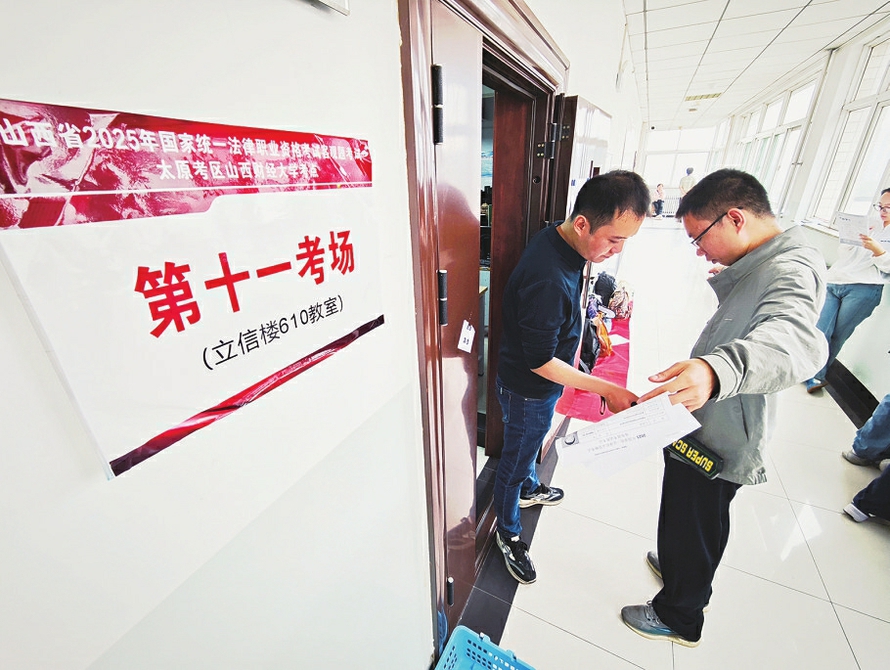 太原市司法局的工作人员早已到位,在入口处引导考生有序入场。“请大家提前准备好身份证和准考证,按指示排队。”工作人员拿着扩音器,声音洪亮。为保障考试顺利,他们已连续忙碌多日,从考场布置、设备调试到人员培训,每个环节都一丝不苟。