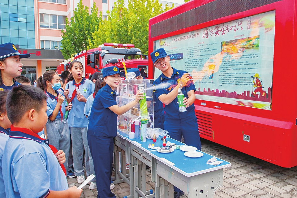 近日,晋城消防“秋季安全公开课”走进当地汇仟小学。1000余名师生听消防讲座、练疏散逃生,还打卡装备展、玩消防实验与互动游戏,上了一堂生动有趣、体验性强的消防安全教育课。