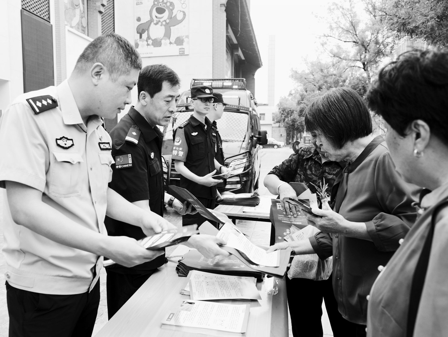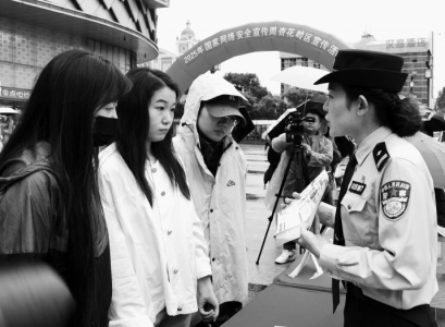 图①:9月16日,洪洞县公安局网安大队、反恐怖大队在莲花城开展宣传活动,切实提升全民网络安全防护能力。