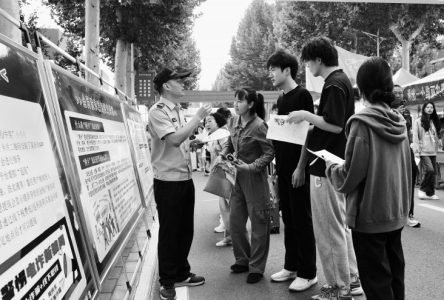 图③:9月16日,临汾市尧都区公安局反诈中心联合汾河派出所,在山西管理职业学院开展防范电信网络诈骗宣传活动。