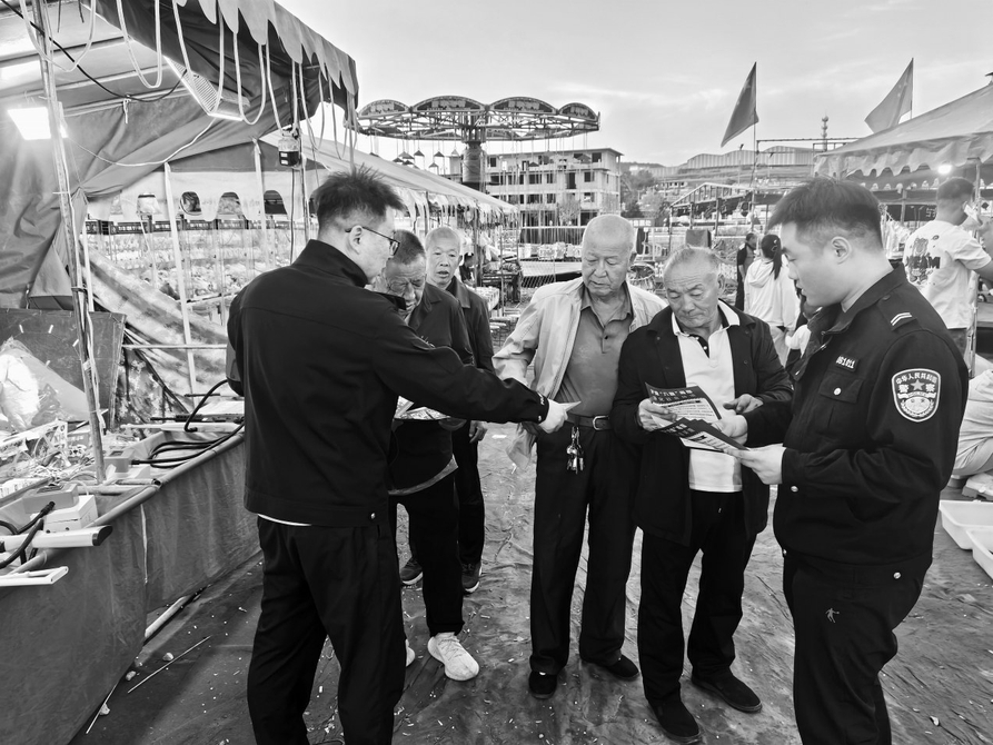 近日,兴县公安局蔚汾派出所民警在原家坪游乐场开展反诈防赌集中宣传活动。民警通过面对面宣讲、“零距离”互动,为群众拆解诈骗套路、揭露跨境赌博危害、传授实用防范技巧,让群众在轻松氛围中掌握安全知识,增强自我保护能力。