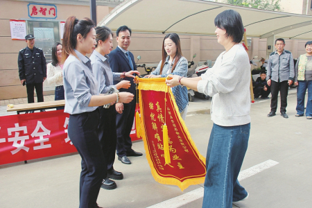 日前,闻喜县公园绿城·六期小区与城西小学正式启用“启智门”,解决了该小区孩子上学的交通隐患。 该小区与学校只一墙之隔,此前小区百余名学生上学需绕行约1公里,且要经过车流量较大的道路才能到校,存在较大安全隐患。物业接到反映后,经过半个月协调,组织施工建成此“启智门”,并设立安全设施与“护学岗”,让学生步行时间从15分钟缩至3分钟,实现“家校直通”。图为业主代表向物业赠送锦旗表达谢意。