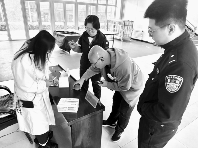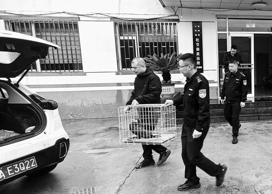 近日,一只受伤的国家二级保护动物雀鹰落在太原市公安局万柏林分局龙泉派出所户政大厅门前,走路一瘸一拐,且无法起飞,好似向民警“求助”。民警上前仔细查看雀鹰受伤情况后,随即妥善将雀鹰送到山西省野生动物保护中心救治,待其伤愈后放归自然。 田昕光摄