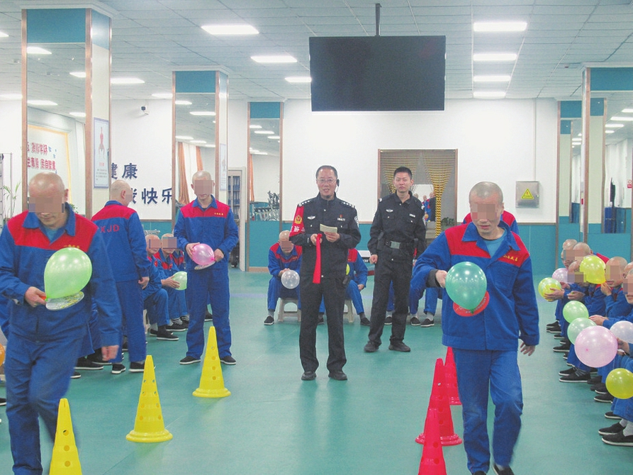 本报讯(通讯员张建刚)近日,新店戒毒所在康复训练中心举办了趣味运动会,通过丰富的运动项目缓解戒毒人员思亲之情,营造出欢乐祥和的戒治氛围。