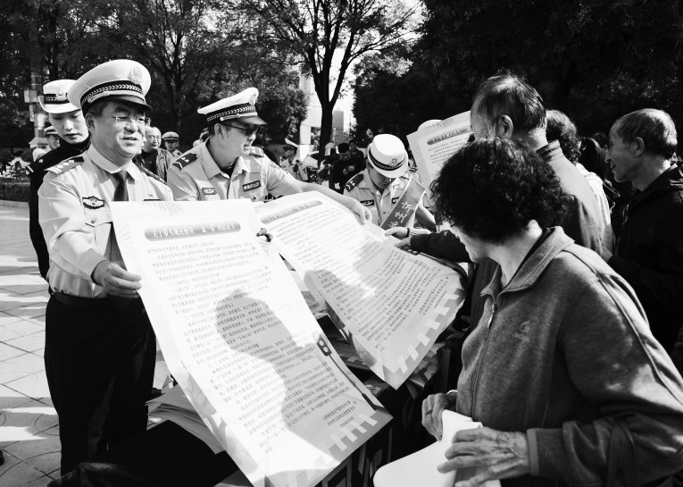 图④:近日,临猗县公安局交通管理大队组织警力,深入亡人交通事故发生的泉杜村和李家庄村,通过发放资料、讲解案例、街头劝导等形式,集中开展大宣传大整治行动。