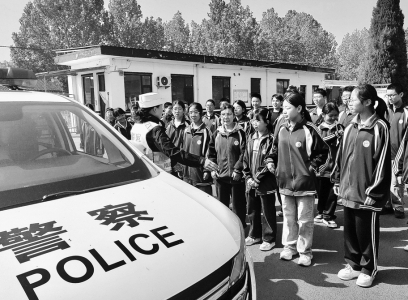 图①:近日,稷山县公安局交通管理大队将警车开进化峪镇化峪初中,以警车为教学道具,为学生们讲解了车辆盲区的含义,让大家直观了解哪里是车辆盲区。