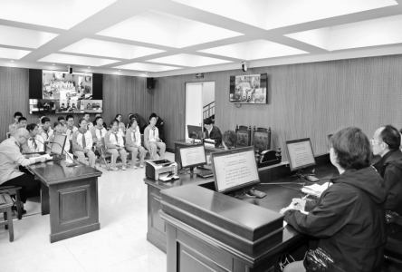 图①近日,长治市司法局工作人员带领长治市实验中学的学生们观摩了一场真实的行政复议听证会,直观感受法治力量。
