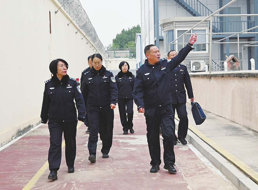 朱耀龙一行现场查看了该所周界围墙、施工现场等重点区域,就民警职工队伍管理、管教执法规范化、安全生产、消防安全及施工管理等工作进行了细致调研。