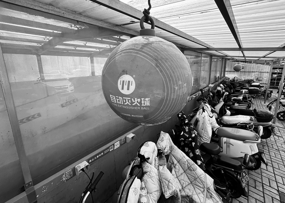 近日,太原市杏花岭区程家村小区车棚完成消防升级,一个个小巧的“自动灭火球”悬挂在棚顶,让居民停车充电更安心。