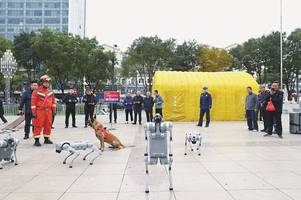 吕梁市2025年消防宣传月启动仪式上,搜救犬技能展示成为一大亮点。11月6日,曾获全国第八届消防搜救犬技术比武竞赛野外搜救第七名的“红利”与五只机器狗同台亮相。“红利”灵活完成服从指令、箱体搜救、翻越障碍、黑暗搜救等系列科目,机器狗也不甘示弱,展现出科技与实战结合的救援力量。市民赵先生赞叹道:“这科技和实战结合得太好了,以后救援肯定更高效。”