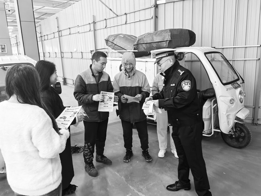 近日,太原市公安局交通管理支队六大队民警走进快递企业、商场、市场等场所,积极宣传“一盔一带”、酒后禁驾等安全出行常识,提升群众交通安全意识和事故防范能力。