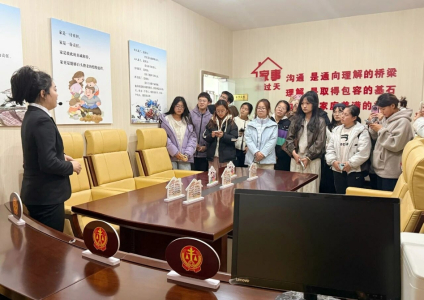 近日,忻州师范学院法律系组织22名大一新生走进忻州市中级人民法院,开展了一场别开生面的法治教育活动。 在法院干警的引导下,学生们依次参观了诉讼服务中心、审判法庭、院史陈列室等地,不仅直观感受了司法的严谨与公正,也坚定了他们尊法学法守法用法的信念。