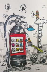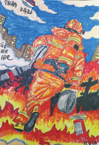 “我画的是消防员叔叔在火场里救人,他们特别勇敢!”一名小学生自豪地展示着自己的画作。每一幅作品都充满童真与创意,线条与色彩之间,满溢着对“火焰蓝”的敬佩与对消防安全的理解。
