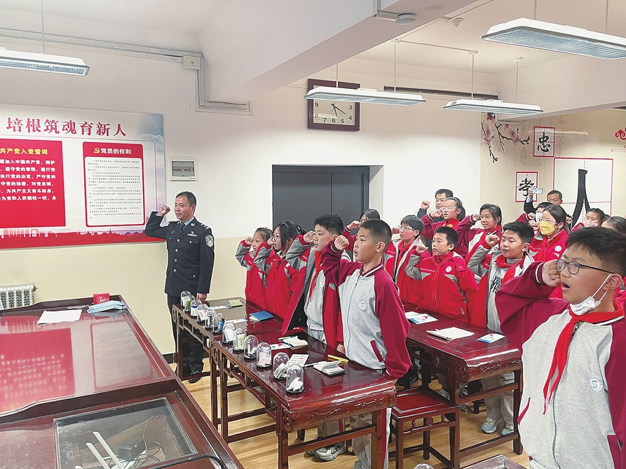 日前,太原市戒毒所民警联合杏花岭区社区戒毒(康复)服务中心工作人员,走进胜利街小学,开展了主题为“百年禁毒 家国有我”禁毒宣传教育活动。 民警以林则徐虎门销烟的历史壮举为切入点,系统梳理我国禁毒斗争的壮阔脉络,引导学生铭记历史、警惕毒品危害。在互动问答环节,民警抛出的禁毒问题引发学生踊跃抢答,有效提升了学生们的识毒、防毒、拒毒能力。活动最后,民警带领全体学生高举右拳庄严宣誓,彰显青少年抵制毒品的坚定决心与守护家国的责任担当。